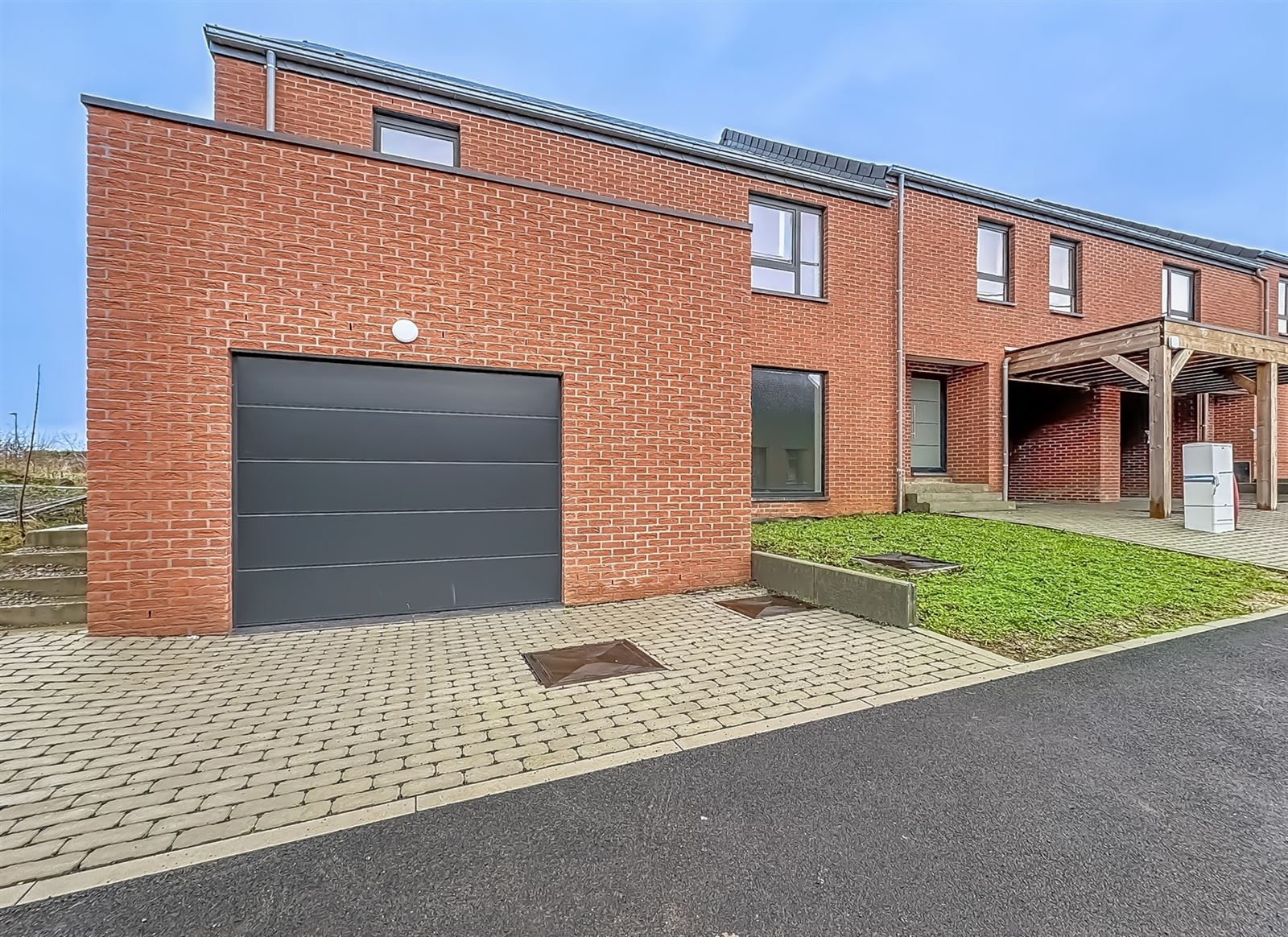 2 SUPERBES MAISONS 3 FACADES VENDUES "CLE SUR PORTE" composées chacune comme suit: Rez: hall d'entrée, salon, salle à manger, cuisine équipée, cellier, wc. Etage: hall de nuit, 4 chambres, salle de bains, salle de douche. Grenier. Grand garage. Terrasse, vaste jardin. Passage latéral. Biens neufs, excellente qualité de construction. Pompe à chaleur, VMC. Plans et cahier des charges disponibles sur demande. PEB: A - n°20250924503538 et 20250924503243. Prix: 362.000€ par maison (possibilité d'obtenir le taux de TVA de 6% selon conditions) + frais de raccordement de 4500€ (htva).