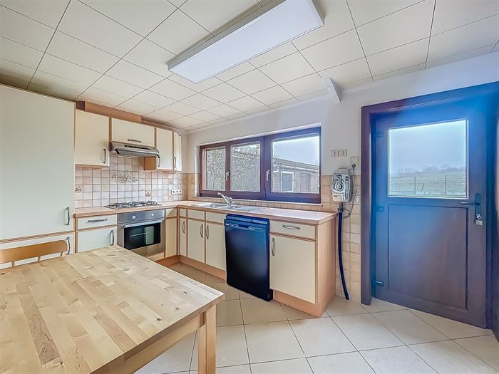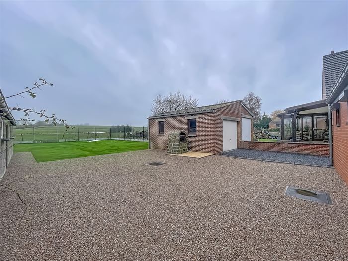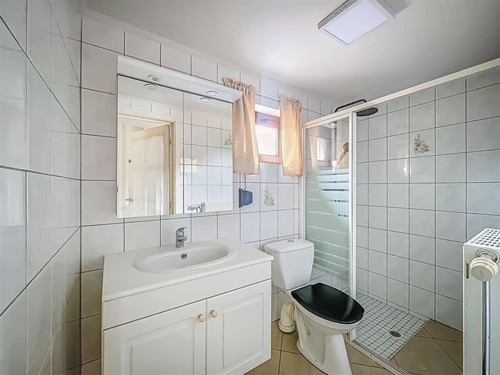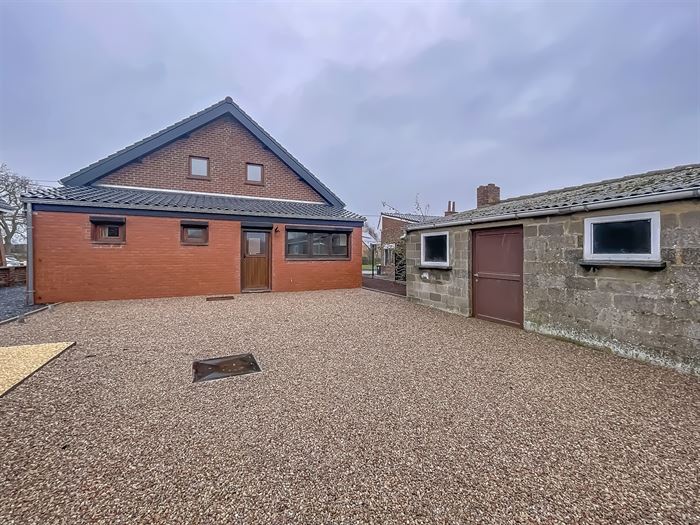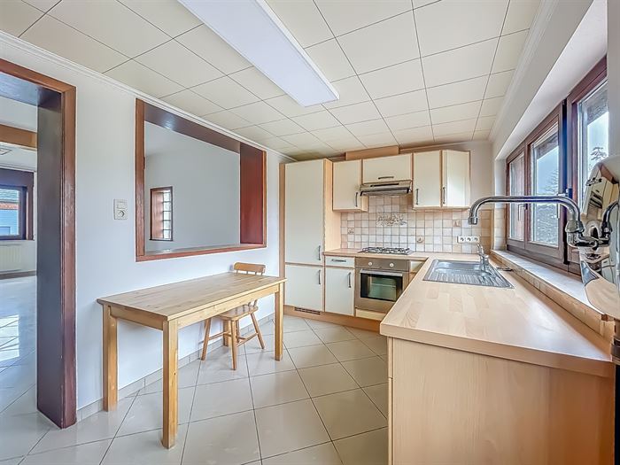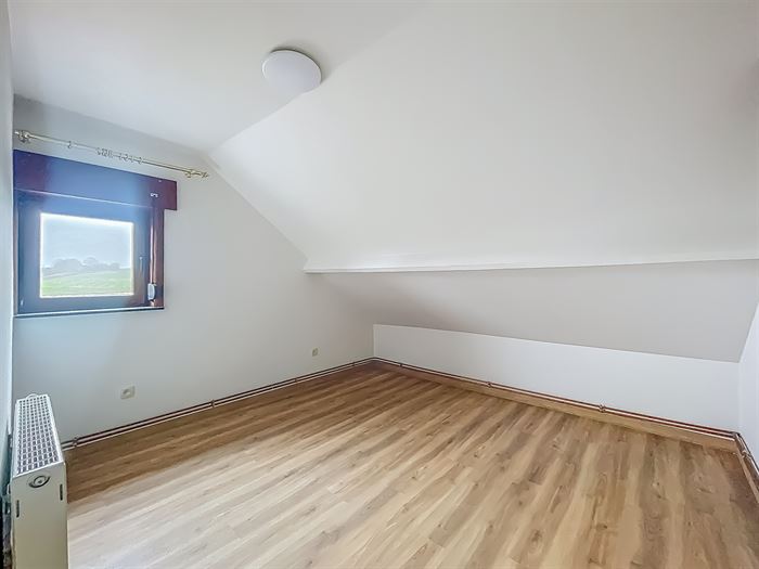 JOLIE ET AGREABLE VILLA SE COMPOSANT COMME SUIT: Rez: pièce d'entrée avec cheminée décorative, lumineux living, cuisine entièrement équipée, salle de douche, WC séparé, pièce polyvalente menant vers l'étage. Étage: hall de nuit, une grande chambre avec un accès au grenier, une petite chambre, une pièce semi aménagée pouvant servir de grenier ou dressing (pas de possibilité d'une 3e chambre). Spacieuse terrasse avec jardin clôturé, remise et passage latéral menant au garage. Cave servant de buanderie. Équipement: chauffage central au mazout, citerne à eau de pluie de 3000L, adoucisseur d'eau. Idéalement située à proximité des commodités. Libre immédiatement. Loyer : 1050€ / mois. PEB: C - PEB N°:20241116007060.